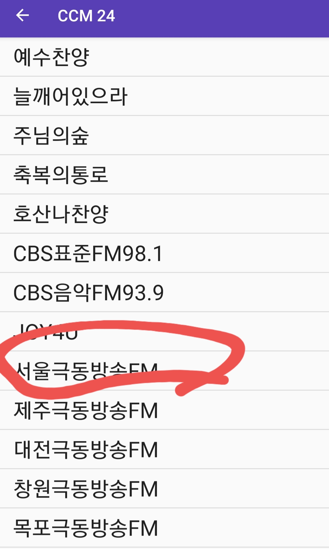 *여러 개의 방송국이 쭉 나오는데... 여기서 하나를 선택합니다 저는 서울극동방송FM을 선택했습니다.