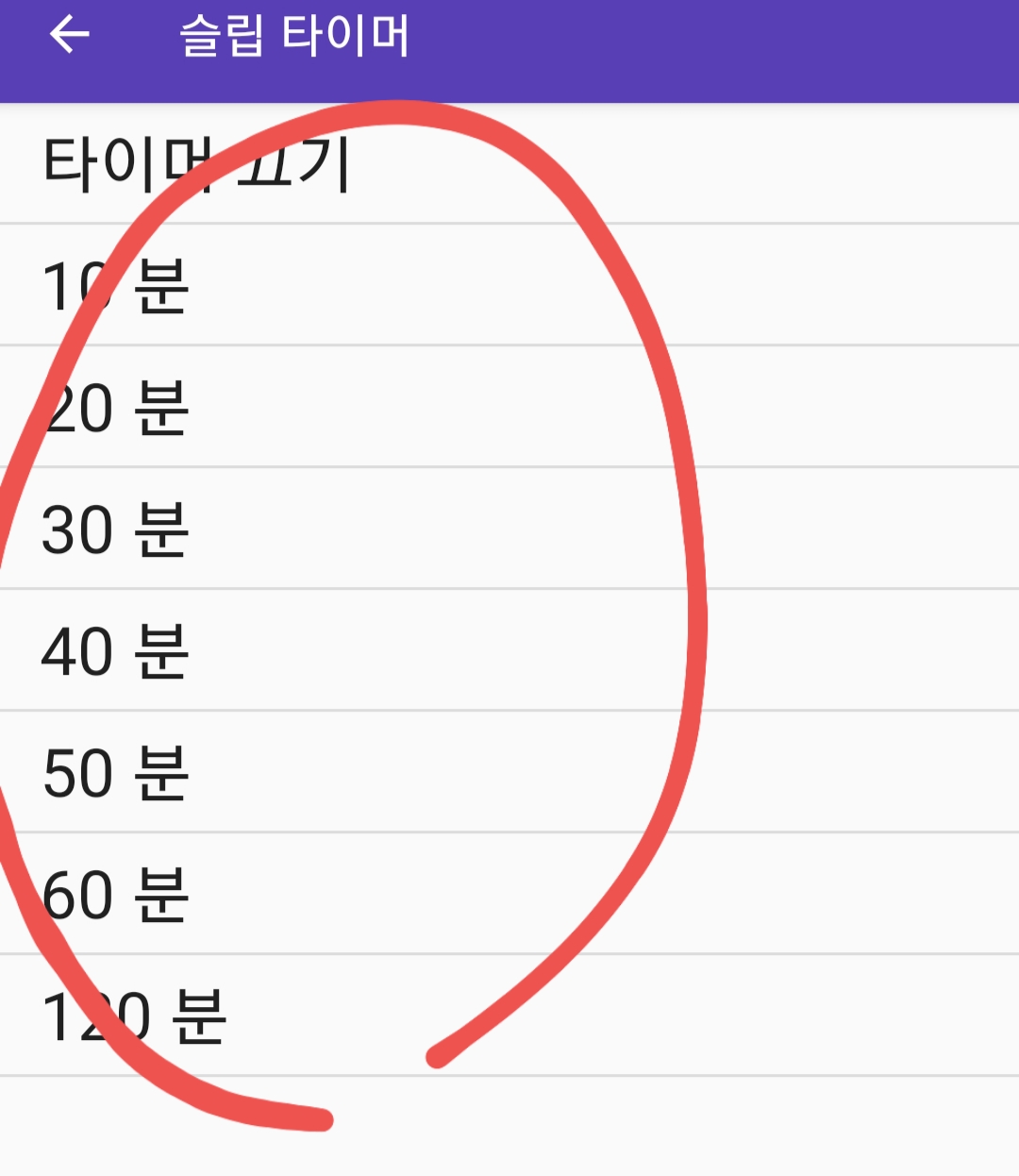*우측에 있는 모래시계 아이콘을 터치하면 슬립타이머가 나옵니다 이름 처럼 어느 정도 듣다가 잠이 들면 끄는 기능입니다. 타이머입니다.