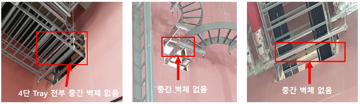 1.Tray수직구간 지지대가 방화마감 시 최소 시공간격보다 가깝게 시공되어 설치불가.